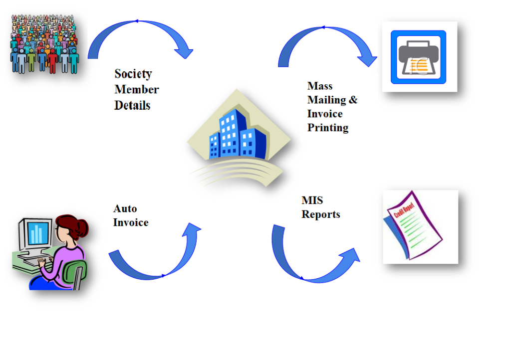 Housing societies collect funds as Rent, Car Parking, Electricity Charges, LPG Charges, Common Area Maintenance Charges, Servant quarters, etc. There are also fines for late fees where interest rates are applicable.